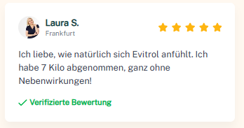 Deine Reise beginnt mit einem Ansatz, der sich an deinen Lebensstil anpasst und auf langfristige Balance ausgelegt ist. Wissenschaftlich fundiert und von vielen Anwendern geschätzt: Evitrol unterstützt den Körper dabei, natürliche Stoffwechselprozesse zu begleiten, das Hungergefühl besser zu regulieren und das allgemeine Wohlbefinden zu fördern.